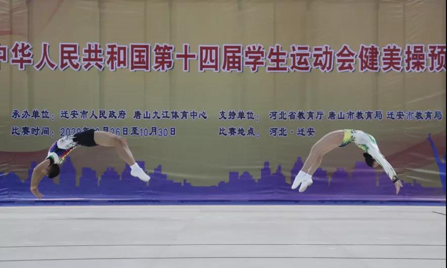 10月30日,中华人民共和国第十四届学生运动会健美操预赛在河北省唐山九江体育中心完美谢幕。来自全国24个省的37所大学、47所中学的40支代表队360余名运动员,经过为期5天的激烈角逐,山西、江西、北京等省(自治区、直辖市)的18支代表队晋级2021年青岛学运会健美操项目决赛。其中,山西中学组代表队以男子单人操、混合双人操和女子单人操、三人操四项均为第一名的优异成绩晋级决赛,最为抢眼。