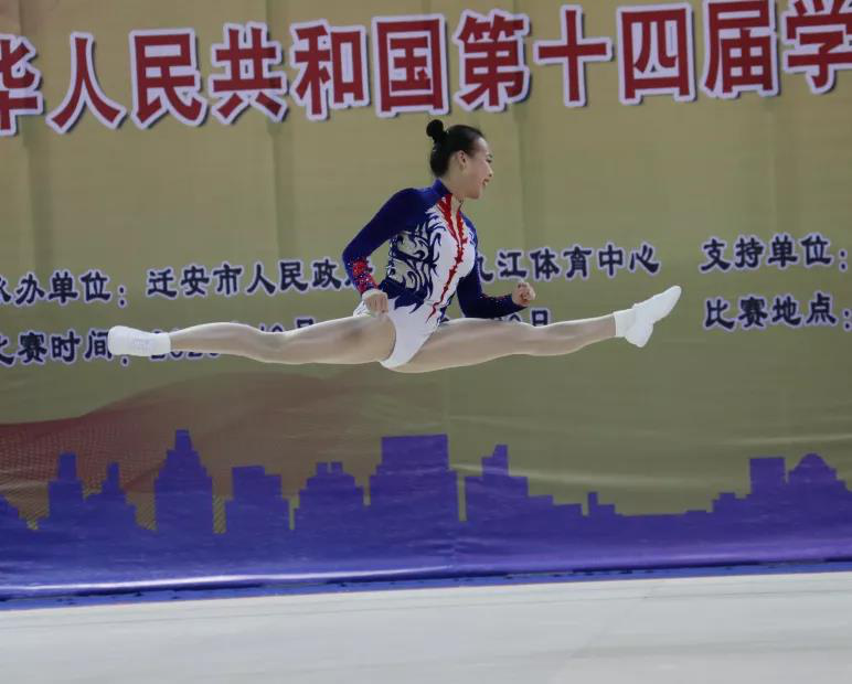 运动员们身着艳丽的服装,伴随着音乐节拍,用高难度的动作、靓丽的舞姿,充分展现了当代大、中学生青春激扬和奋发向上的精神面貌。
