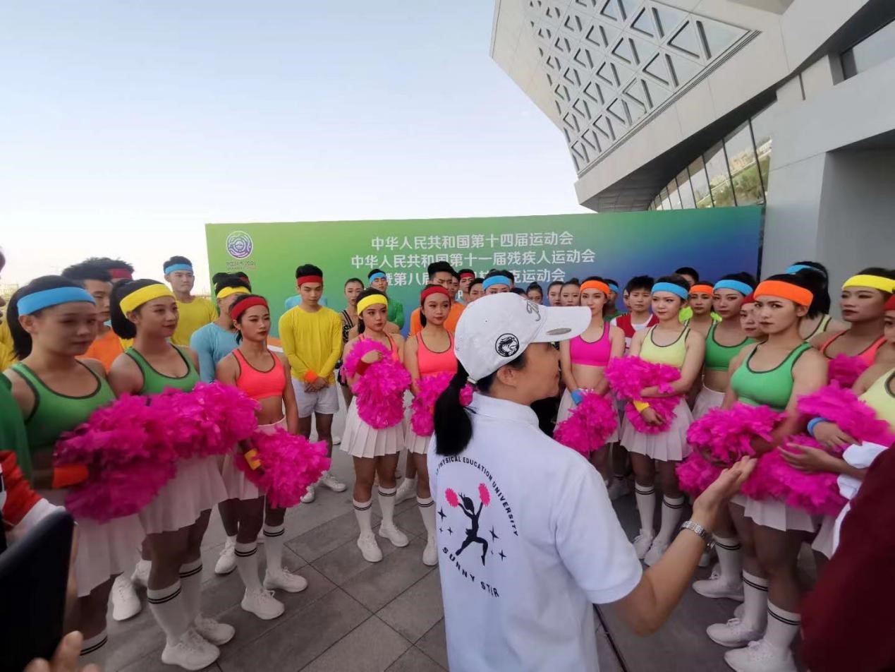 2020年9月15日晚8时,璀璨的灯光在西安奥体中心亮起全国人民共同关注“第十四届全运会和残特奥会倒计时一周年启动活动”。艺术学院操舞教研室闫晓副主任、许波教授、俞丹和陆渟老师以及舞蹈教研室魏明涛主任、娄山老师带领健美操、啦啦操专项学生及艺术体操队共同为新全运助力。万象城allwincity官网艺术学院已经以饱满的热情,向十四运展开双臂,让我们一同期待十四运的成功举办。