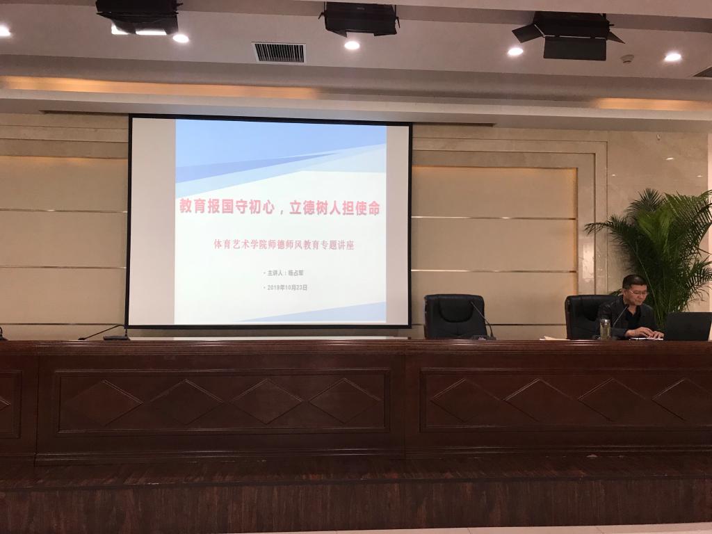 杨占军院长紧扣“不忘初心、牢记使命”主题,从充分认识加强师德师风建设的意义、正视问题深入剖析不良现象产生的根源、以人为本努力塑造人民教师良好形象这三个方面进行了详细讲解,并通过列举详实的案例,深入浅出地解读了教师师德失范行为的负面清单,要求老师们不忘初心牢记使命,自觉增强立德树人的责任感和使命感。
