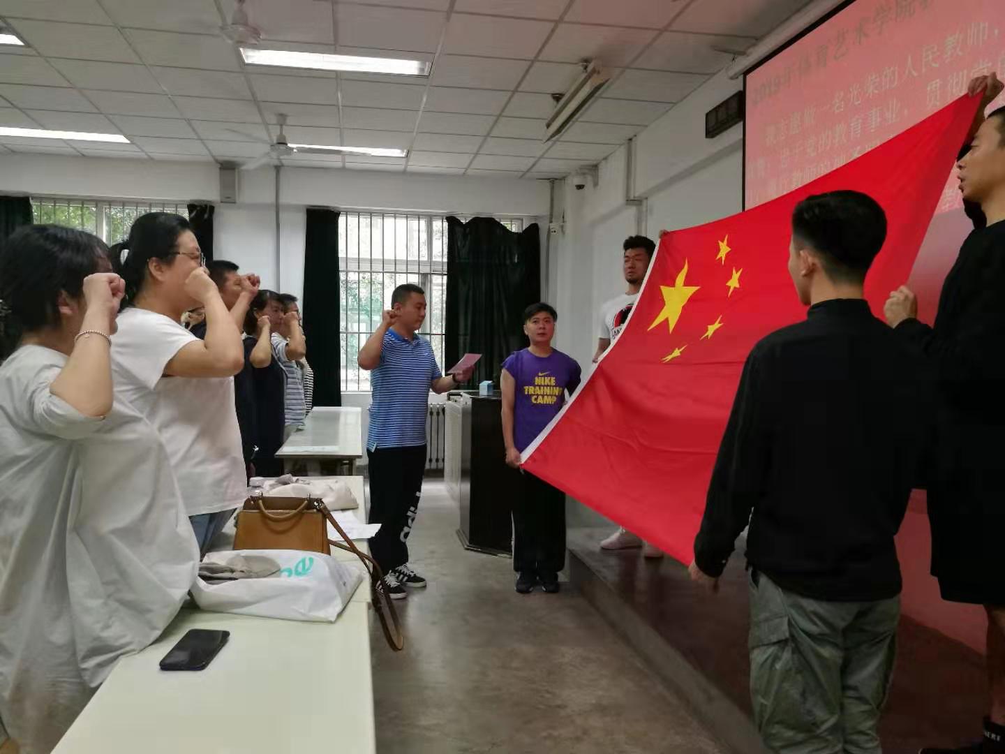 仪式最后,在郭伟老师的带领下,体育艺术学院全体教师面向国旗,右手举拳,庄严宣誓:“我宣誓,忠诚人民教育事业,依法履行教师职责;为人师表,敬业爱生;严谨治学,修身立德;启智求真,恪守有教无类;因材施教,注重创新发展;为科教兴国,上下求索;为民族复兴,广育英才!”宣誓活动庄严神圣,营造出了庄严、隆重、热烈的良好氛围,宣誓活动圆满结束。今后,体育艺术学院全体教师将按照誓词内容,争做一名知行合一的教育人。