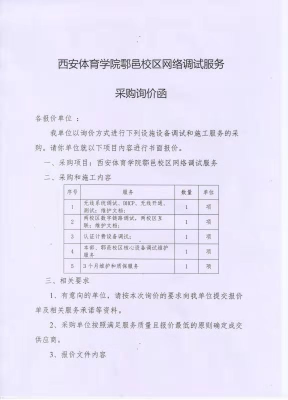 万象城allwincity官网鄠邑校区网络调试服务采购询价函