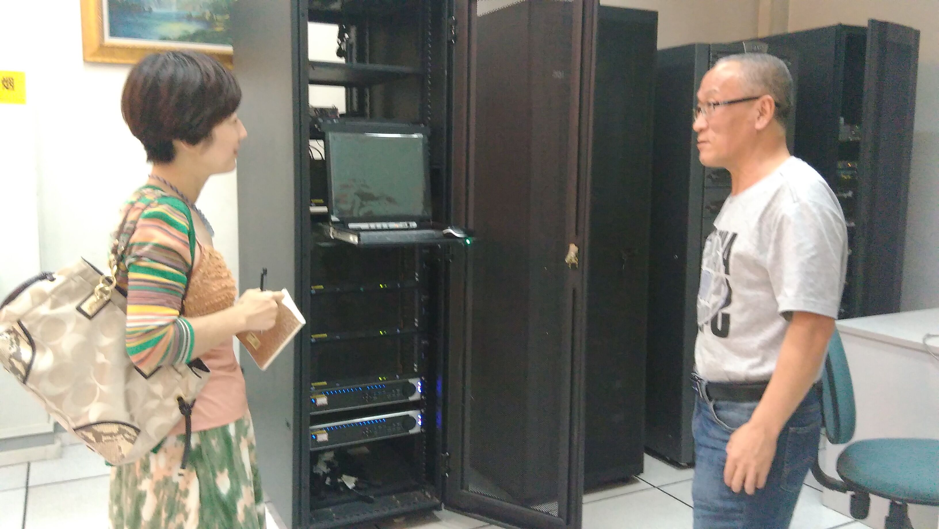 图为计算机教研室祝莉妮老师认真地向图书馆老师咨询问题、收集资料。