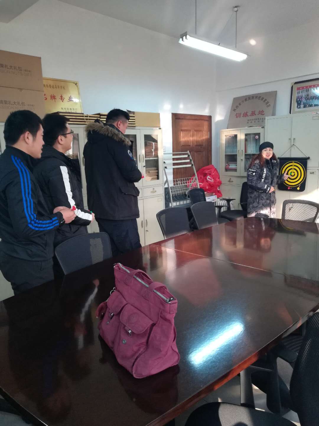 武术系分会于2018年12月12日下午在系会议室举行了武术系2018年教职工飞镖比赛,比赛为掷准赛。