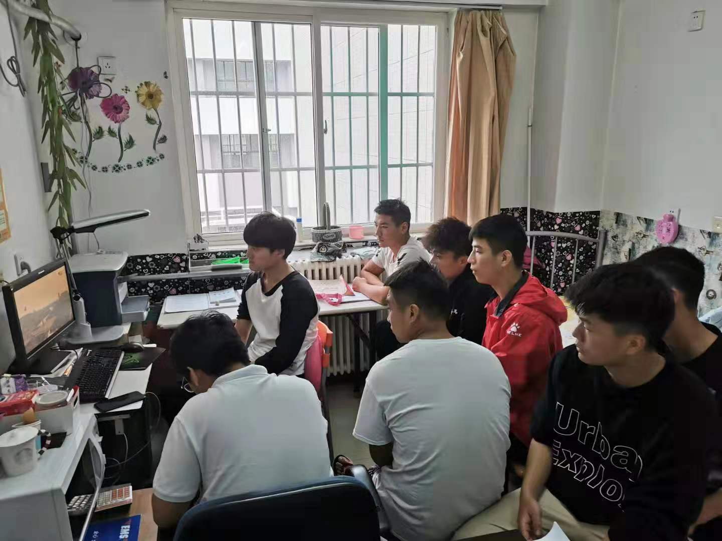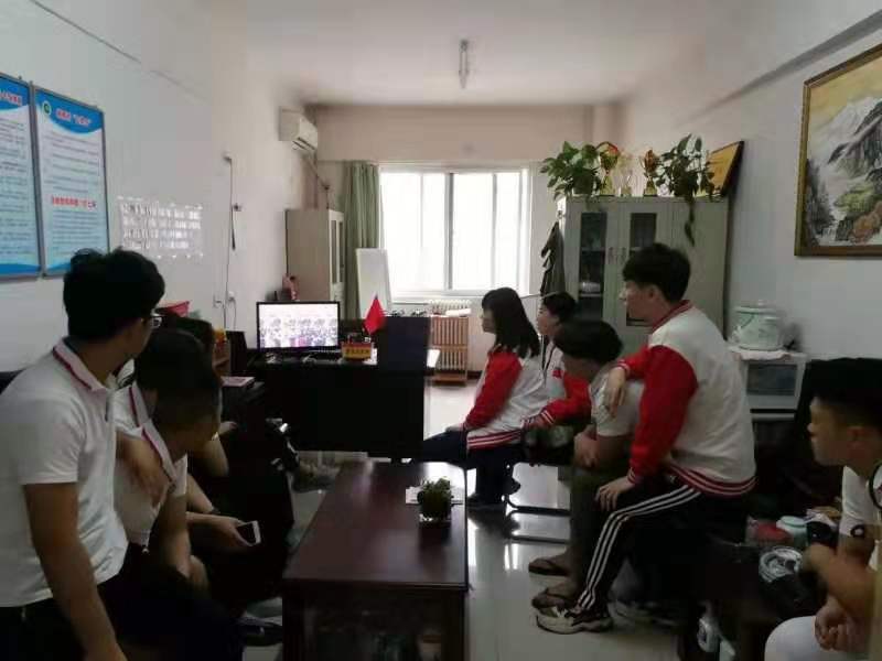 上午10:00时,辅导员王华、任琳、滑勇三位老师组织学生党员、入党积极分子在年级办公室观看庆祝中华人民共和国成立70周年大会、阅兵仪式及群众游行的实况转播。虽然只能透过电脑屏幕观看阅兵仪式,但是受阅官兵的飒爽英姿、嘹亮的口号、先进的武器装备以及排山倒海般的气势,让老师们、同学们备受震撼鼓舞、心潮彭拜,纷纷为祖国的强大、繁荣喝彩,为祖国的发展、进步骄傲!以此也给祖国母亲送去最诚挚的祝福!