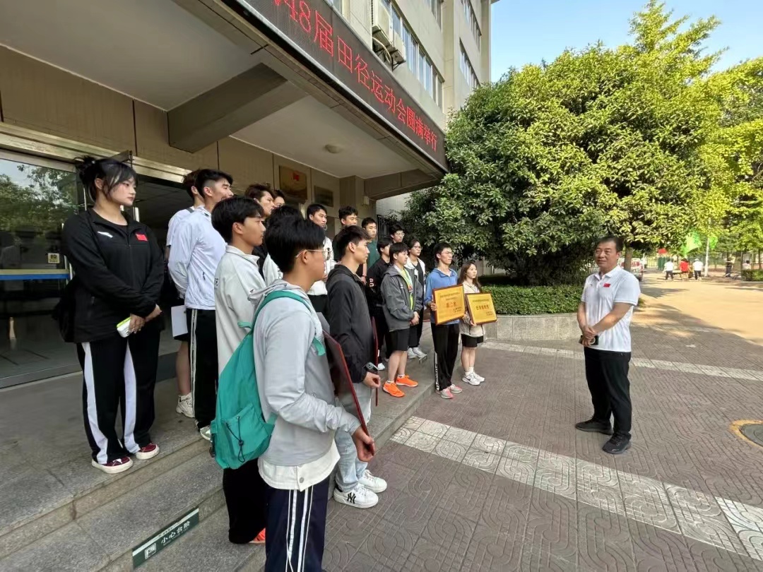 春光无限好,运动正当时,青春气息随风而至,热血与阳光撞了个满怀,武术学院运动员们挥洒汗水,勇毅拼搏,在万象城allwincity官网第48届田径运动会上不负众望取得佳绩。武术学院党总支书记刘耀荣现场指导运动员积极备赛和后勤保障工作,学工办主任王华、辅导员贺去非、智文飞、高梁共同安排部署了学生志愿服务和运动会期间安全管理工作。