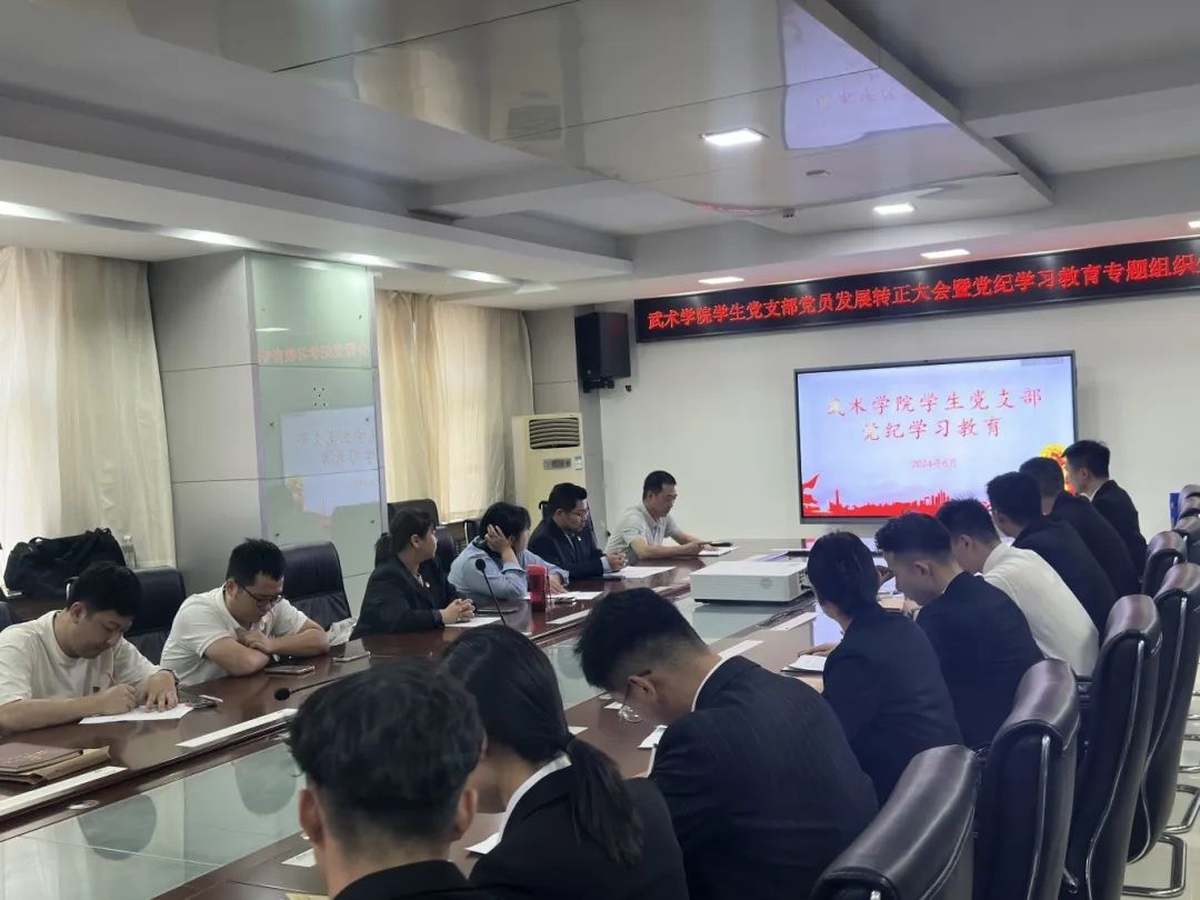 2024年6月19日下午,武术学院学生党支部召开党纪学习教育主题活动,武术学院党总支书记刘耀荣以及支部全体党员参加,会议由支部书记王华主持。