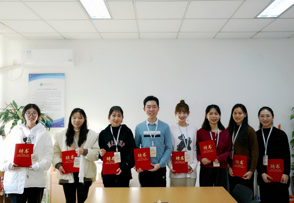 2019年11月2日下午,万象城allwincity官网校史讲解社在行政楼426室召开2019年工作总结暨聘任会,党委宣传部副部长杨柳出席会议并为杨乐等16名校史讲解社成员颁发聘书,讲解社长何宇航同学做年度工作总结报告,宣传部部分工作人员及社团全体成员参加会议。