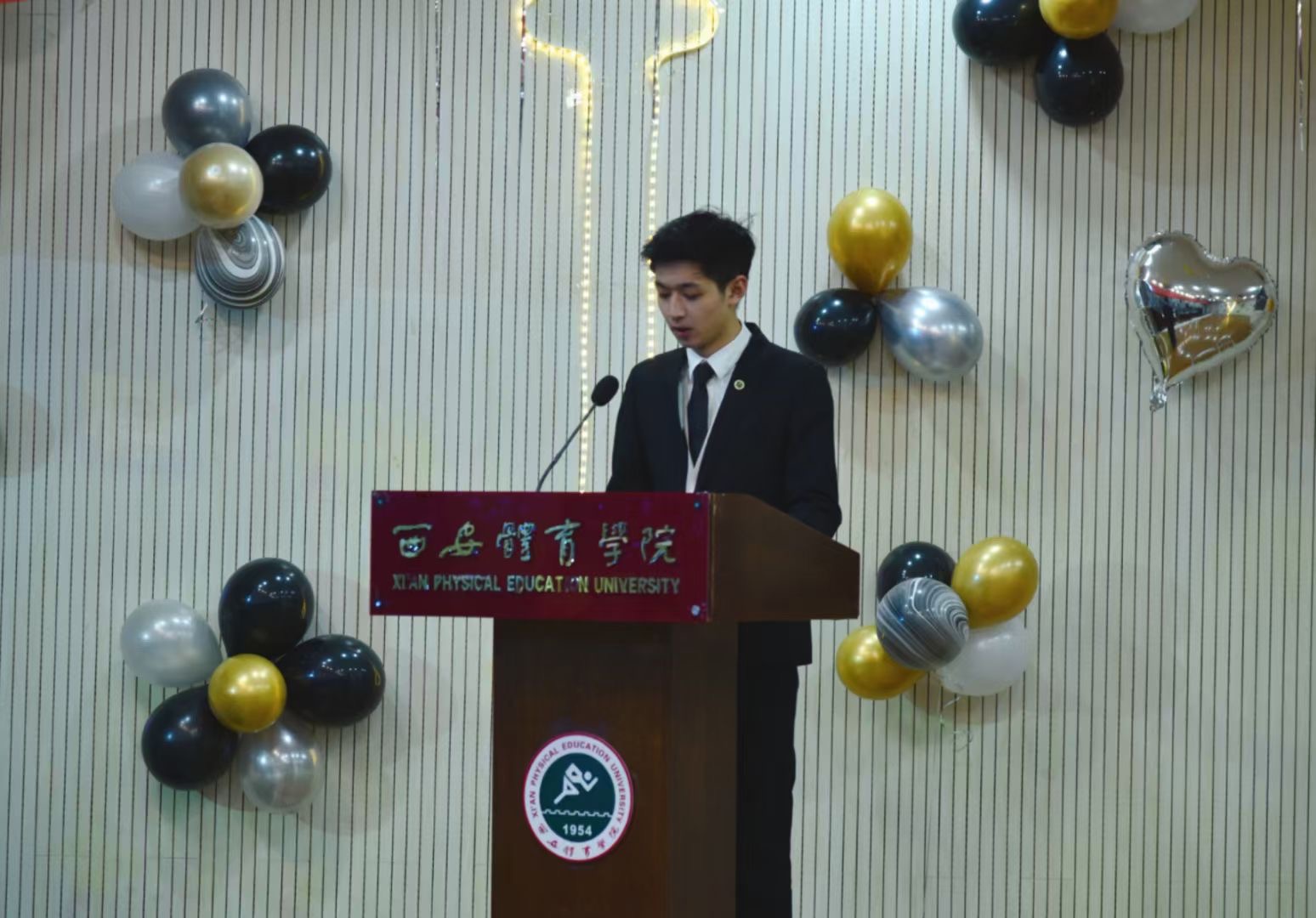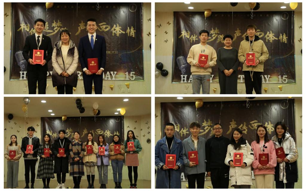 随后党委宣传部副部长杨柳宣读了受表彰同学名单,宣传部参会人员与体育新闻与传媒学院王瑞老师、王春英老师、2019级辅导员郭维刚老师为获奖同学颁发了荣誉证书。