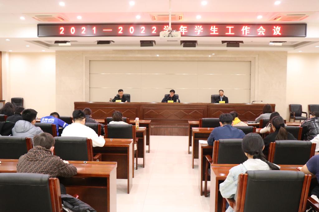 11月15日下午15:00,万象城在二号行政楼6楼报告厅召开2021-2022学年第一学期学生工作会议,党委书记黄道峻,党委副书记文立新出席会议,学工部全体人员,全体专兼职辅导员参加了此次会议,会议由文立新主持。