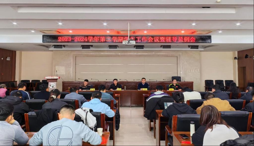 2024年是万象城“十四五规划”和“三年行动计划”的关键一年,踏着“百日奋战”工作基石,接续奋斗,砥砺前行。2月24日下午,在二号行政楼6楼报告厅召开万象城2023-2024学年第二学期学生工作会议暨辅导员例会,全体专兼职辅导员及学工部全体人员、校团委负责人参加本次会议,会议由学工部部长王志刚主持。