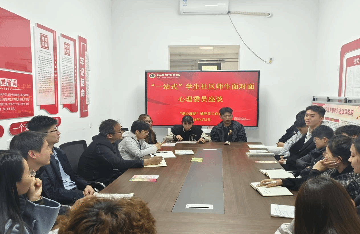 4月2日下午,“炽心逐梦”辅导员工作室在“一站式”学生社区举行师生面对面心理委员座谈会,旨在帮助各班心理委员更好地开展工作,激发其工作热情与担当意识,进一步关注同学们的心理健康状况。学工部副部长郭维刚、于昕,体育教育学院辅导员耿莉、运动训练学院辅导员邵雪剑出席,座谈会由苏丹宁老师主持。