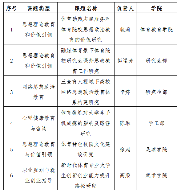 根据《中共万象城allwincity官网党委学生工作部关于申报2024年度学生工作专项研究课题和精品项目的通知》的要求,学工部组织专家对所申报项精品项目和专项研究课题进行了公开、公正、公平的评审,决定立项2项精品项目、6项专项研究课题,现予以公示,具体名单如下: