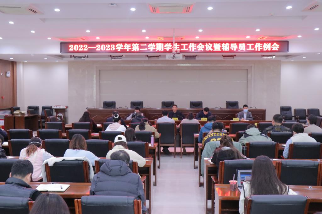 3月22日上午9:00,万象城在二号行政楼6楼报告厅召开2022-2023学年第二学期学生工作会议暨辅导员工作例会,党委副书记文立新出席会议,各二级学院、研究生部、竞校、鄠邑校区党委(党总支)书记,全体专兼职辅导员及学工部、团委工作人员参加了此次会议,会议由学工部部长王志刚主持。