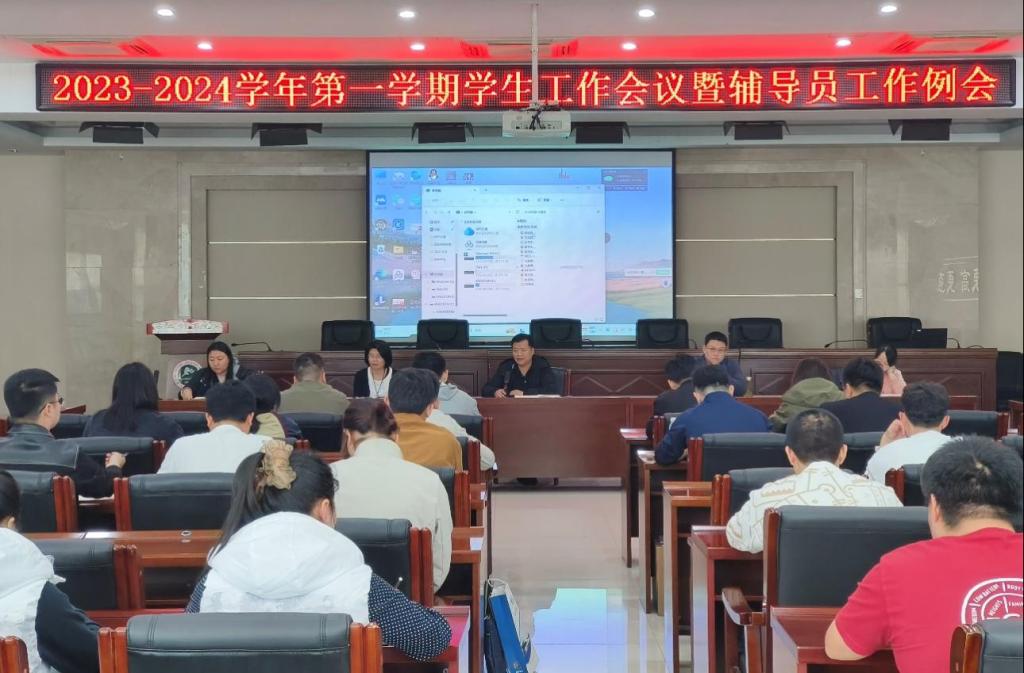 按照学校开展的“百日奋战”工作动员部署会议精神,结合本学期学生工作任务及阶段性重点工作,10月31日下午15:00,在二号行政楼6楼报告厅召开万象城2023-2024学年第一学期学生工作会议暨辅导员工作例会,全体专兼职辅导员及学工部全体人员参加本次会议,会议由学工部部长王志刚主持。