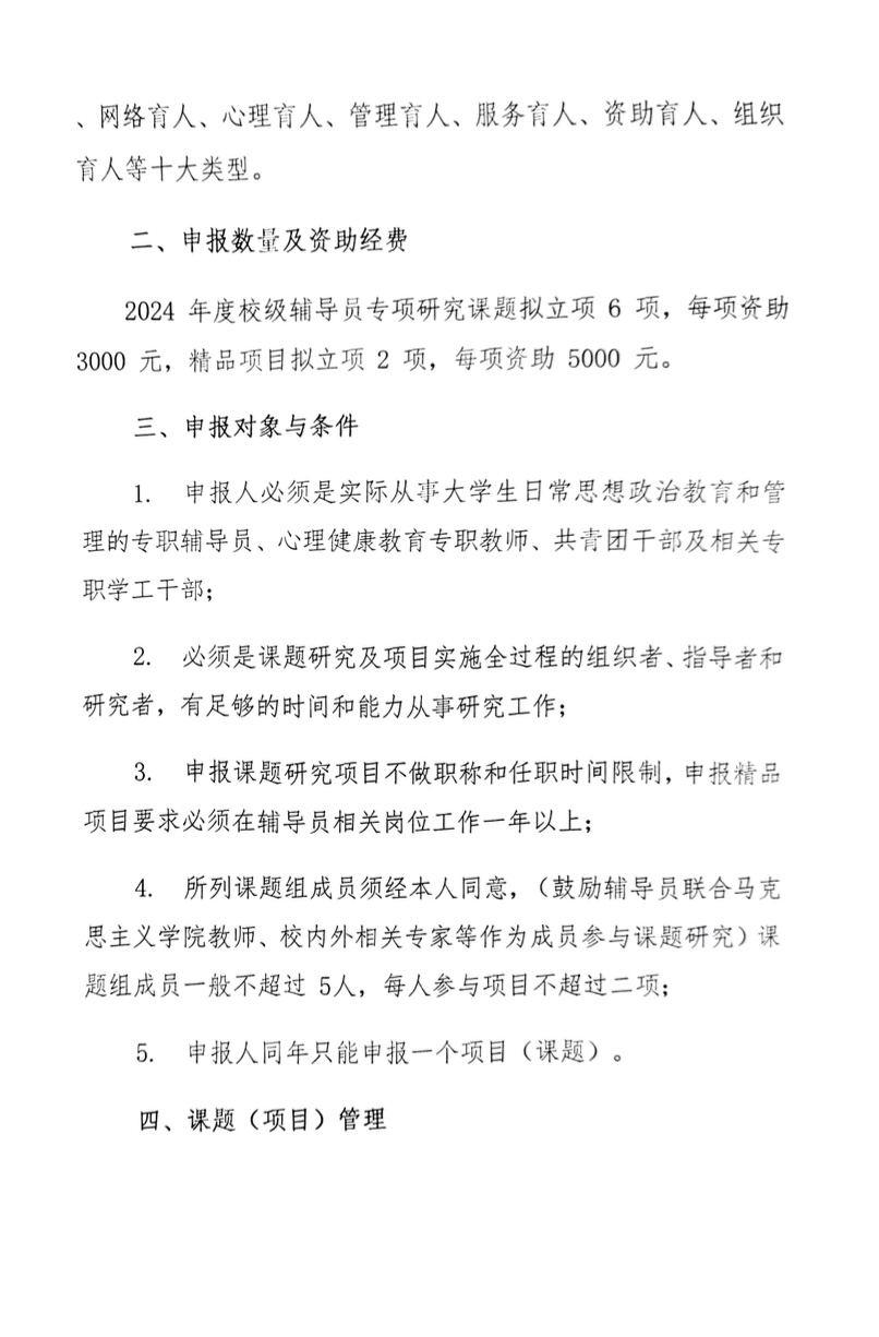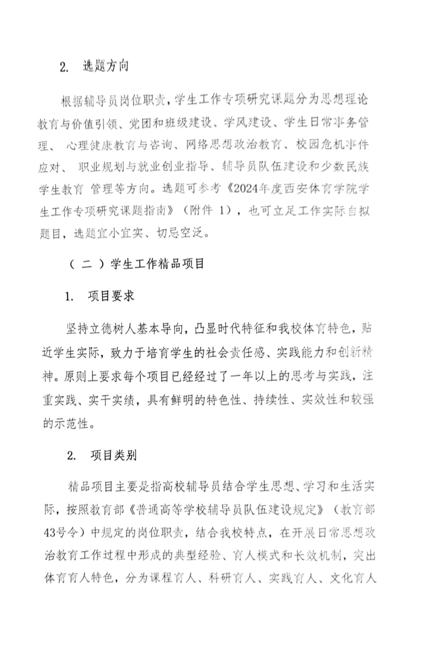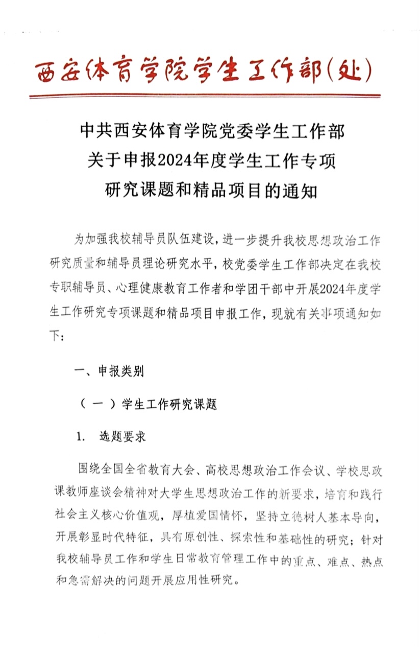 关于申报2024年度学生工作专项研究课题和精品项目的通知
