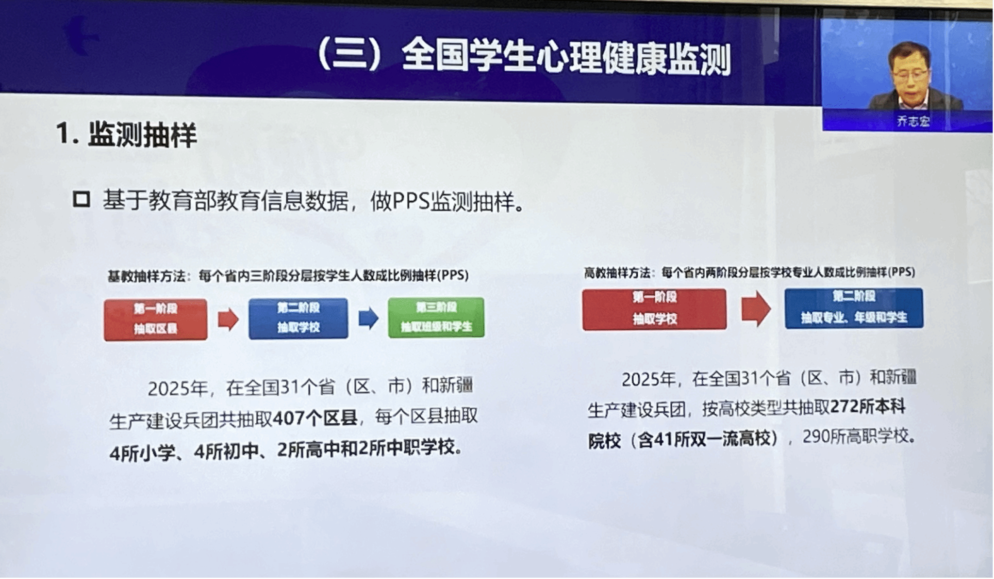 本次培训聚焦2024年全国学生心理健康监测核心结论,明确了2025年监测工作的任务要求:不仅表扬了监测工作质量突出的地区与学校,还围绕信息上报、组织实施、应急处置等环节开展培训,并演示了全国学生心理健康监测平台的操作流程,同时介绍了学生实名监测预警试点工作方案。