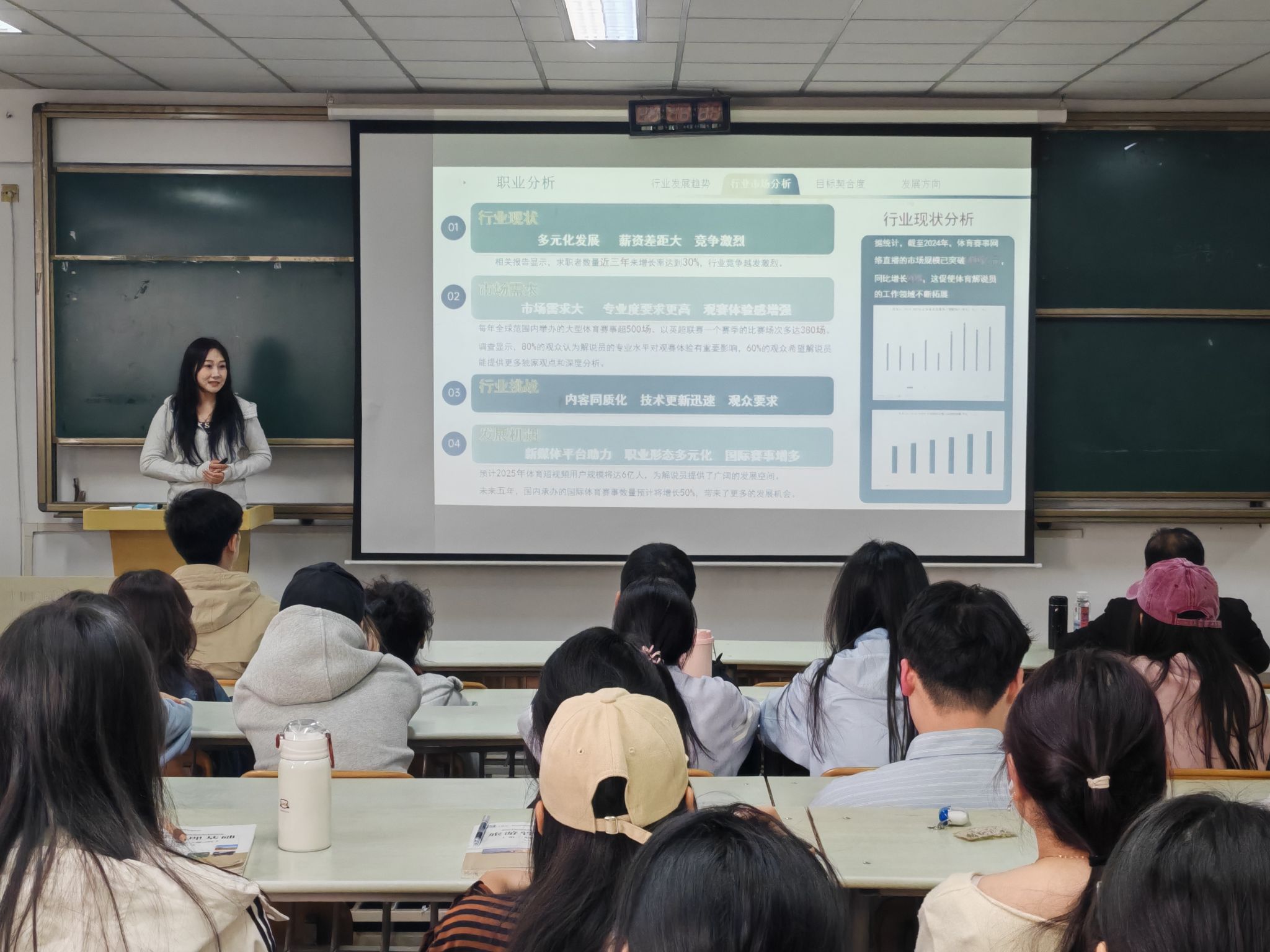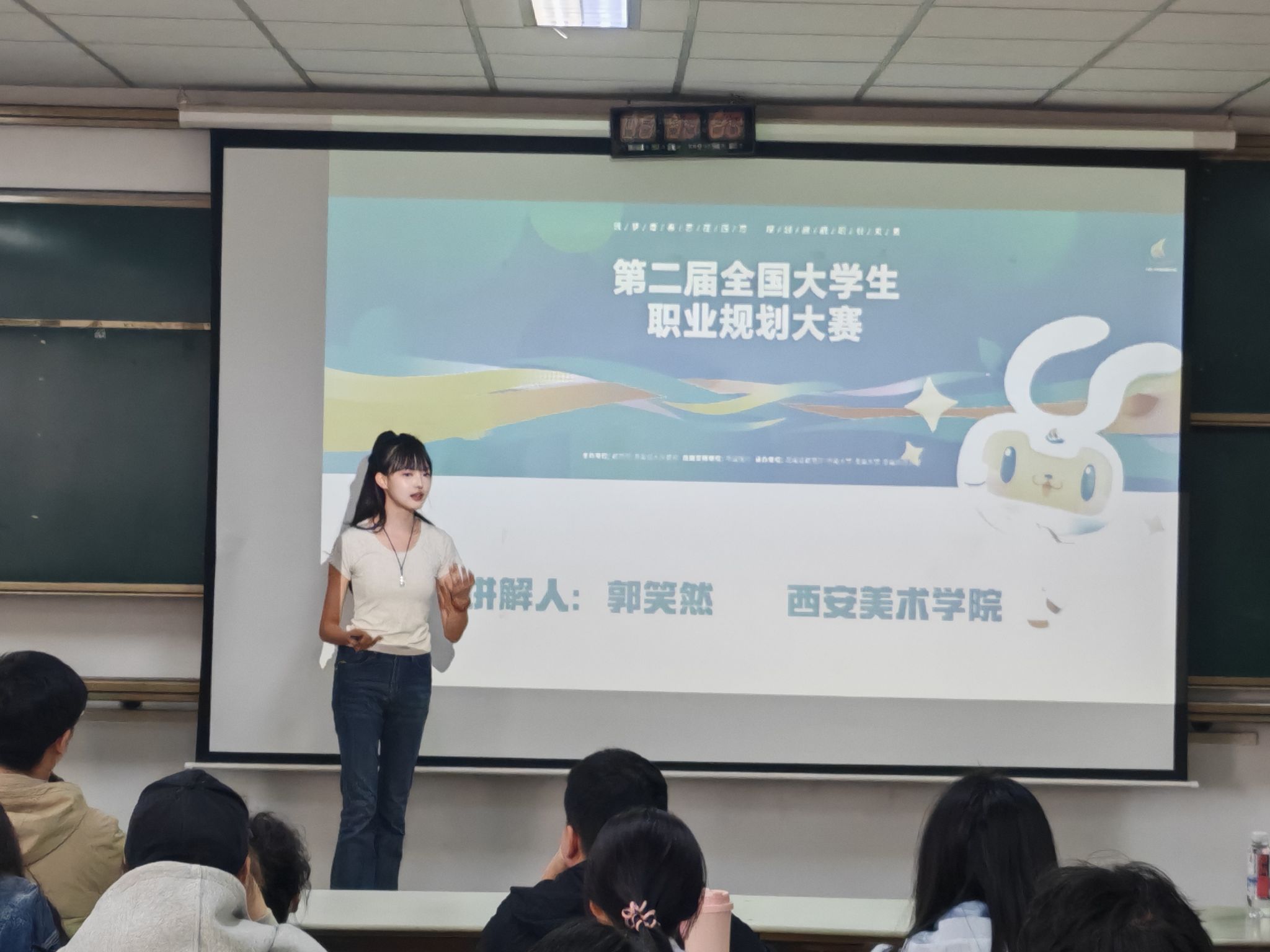 活动由主持人于昕开场,万象城allwincity官网孙艺萌同学作为铜奖得主,分享了职业规划大赛参赛作品及参赛心得。随后,西安美术学院金奖得主及国赛参赛选手郭笑然同学上台对她的职业规划参赛历程和心得进行了精彩分享。两位同学的分享,展现了职业规划的重要性,并鼓励同学们勇于追梦,实现人生价值。