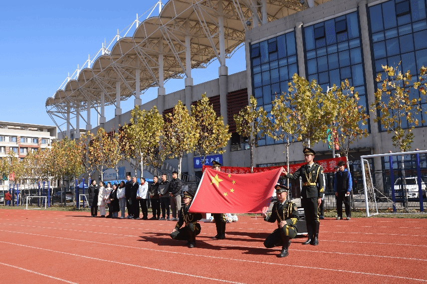 开幕式在激昂的国歌声中拉开序幕,全体师生庄严肃立,面向五星红旗行注目礼,齐唱国歌,洪亮的歌声回荡在校园上空,彰显着对祖国的深深敬意和对此次足球联赛的庄重态度。