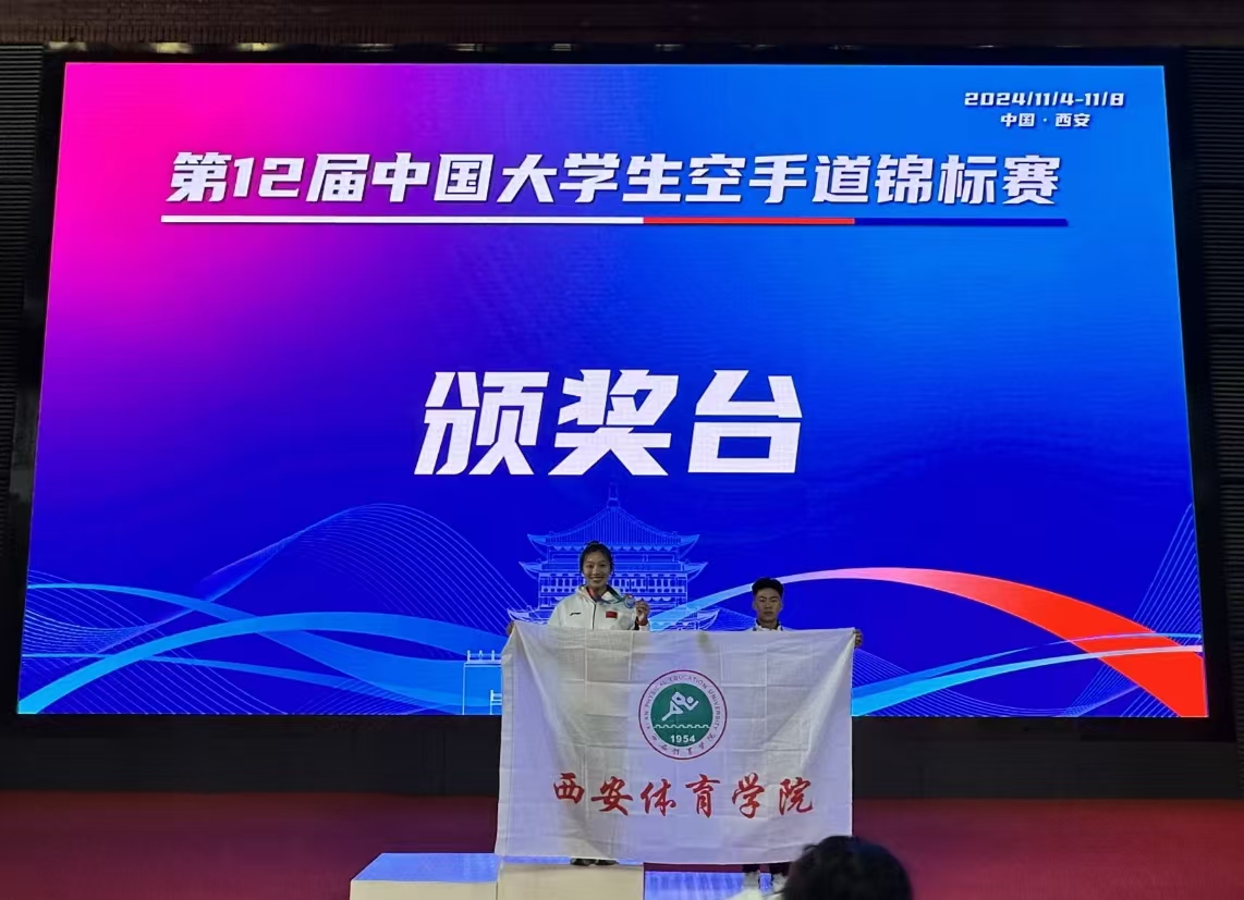 2024年11月4日至8日,第12届中国大学生空手道锦标赛在陕西省西安市西安外国语大学隆重举行。来自全国74所高校的教练员、运动员近700余人参加了此次比赛。运动训练学院学生在马波教授的带领下,凭借高超的技术表现,取得了优异成绩。其中我院2024级学生徐铭东荣获丙A组男子个人组手-63公斤级银牌、2024级学生黄晨璐荣获丙A组女子个人组手-63公斤级铜牌、2024级学生陆卓浩荣获79公斤以上级第五名、此外我院2024级学生陆卓浩、徐铭东荣获男子团体组手丙A组第三名,2024级学生陈维峥、刘金科获得丙A组男女混双型第五名的佳绩,为我院争得了荣誉。