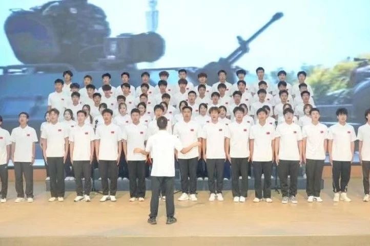 活动现场,体育教育学院的同学们身着整齐的服装,以饱满的精神状态登上舞台。当熟悉的旋律响起,他们用嘹亮的歌声、坚定的眼神和整齐的动作,将《当那一天来临》的每一个音符都演绎得淋漓尽致。“当那一天真的来临,放心吧祖国,放心吧亲人,为了胜利我要勇敢前进”,歌声中传递出的是对祖国的忠诚、对使命的担当以及对青春的热血诠释。同学们的演唱富有感染力,每一句歌词都仿佛化作了一面旗帜,飘扬在每一个人的心中,让大家深刻感受到了青年一代肩负的责任与使命。