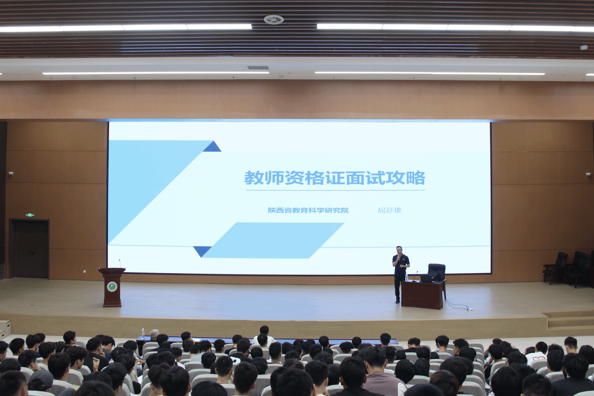 为助力学生高效备战教师资格证面试、提升教育教学实践能力,体育教育学院于5月13日在综合楼3楼报告厅举办《教师资格证面试技巧与核心素养提升》专题讲座。本次讲座特邀陕西省教学名师、教育教学领域资深专家屈彦雄老师担任主讲嘉宾,由体育教育学院党委副书记黄岗主持,体育教育专业2022级、2023级备考学生及各年级辅导员老师参加