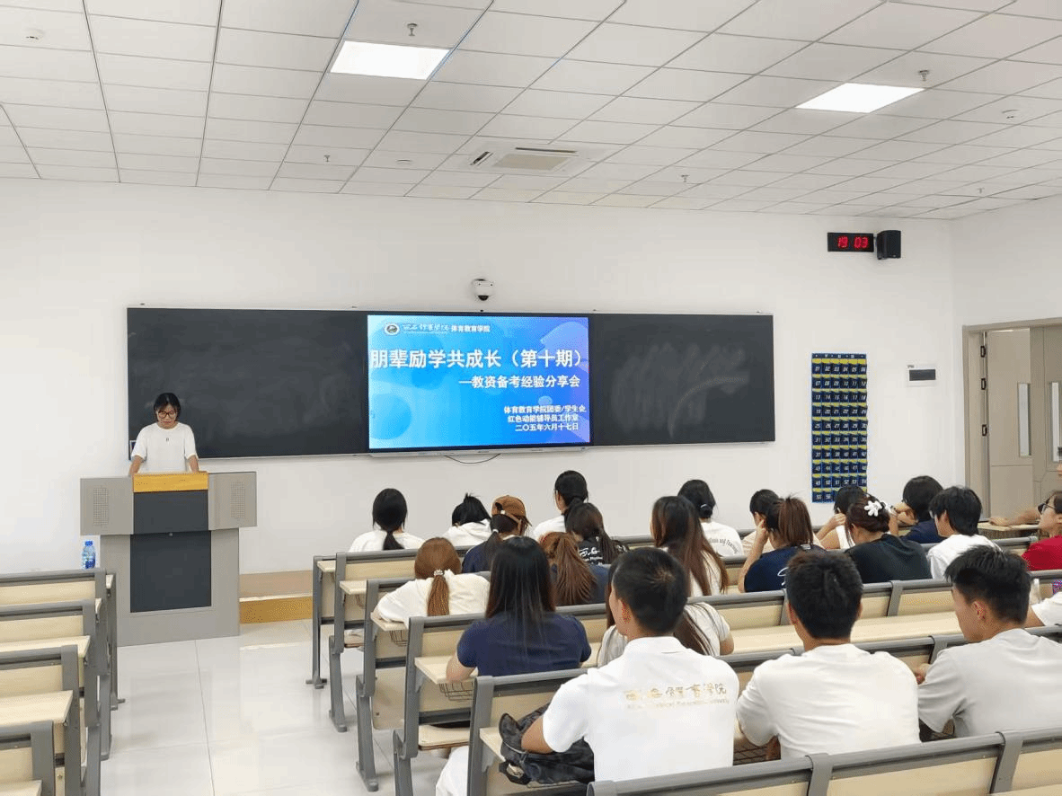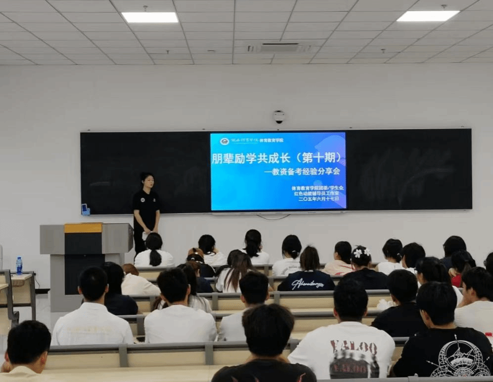 为进一步提升我院师范生教师专业技能,加强朋辈交流学习,助力同学们高效备考、提升教资面试通过率,2025年6月17日晚,体育教育学院朋辈励学共成长(第十期),在教学楼206开展教资备考经验分享会。