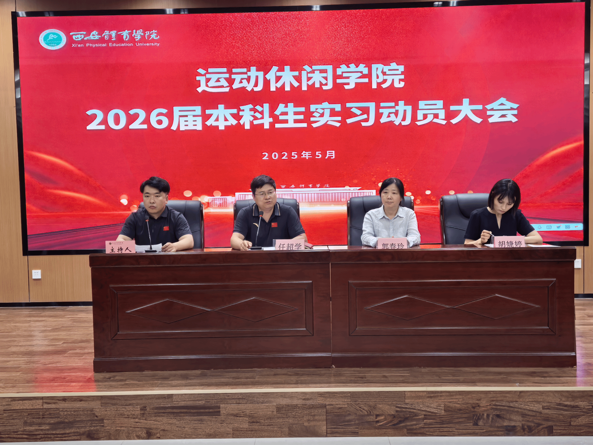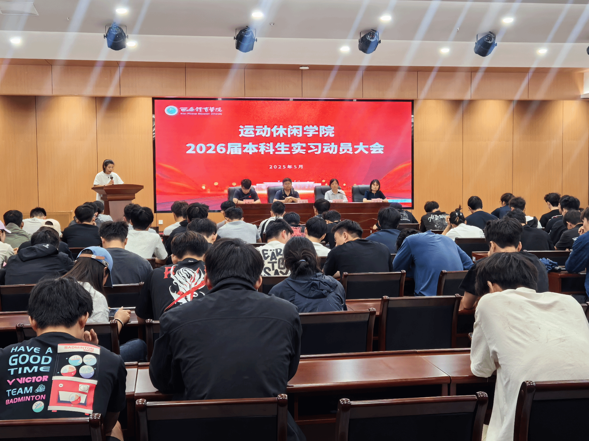 2025年5月30日,运动休闲学院召开了2026届本科生实习动员大会,此次大会旨在深入贯彻落实实践育人的教育理念,引导学生明确实习目标,为即将开启的实践征程奠定基础。学院领导班子、科级干部、辅导员及2026届全体学生参加了本次实习动员大会。