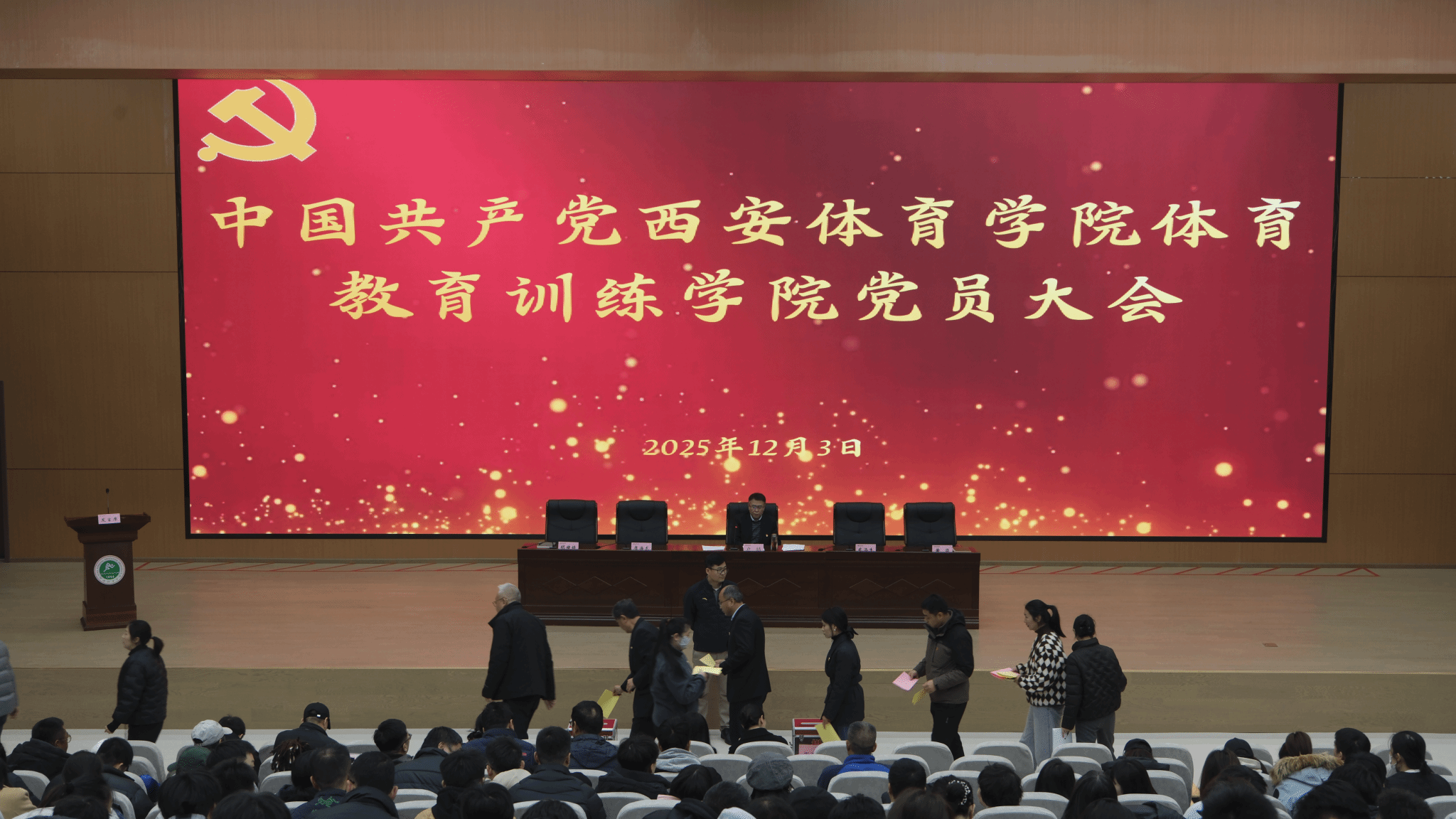 根据《万象城allwincity官网二级委员会(党总支)、党支部换届选举工作实施方案》相关要求,经学校党委批复同意,12月3日下午,体育教育训练学院党委在鄠邑校区图书馆三楼报告厅隆重召开党委和纪委换届选举工作党员大会。学院全体教师党员、学生党员参加会议,会议由学院党委书记卢喆同志主持。
