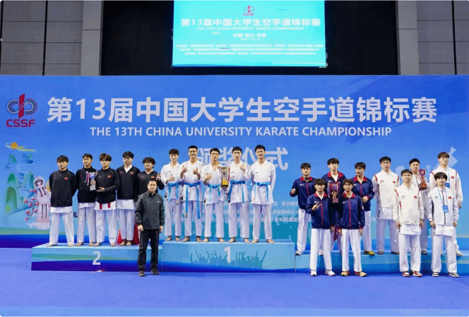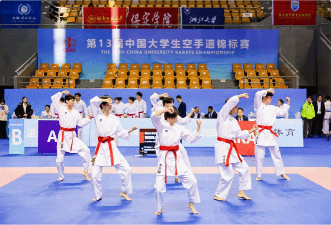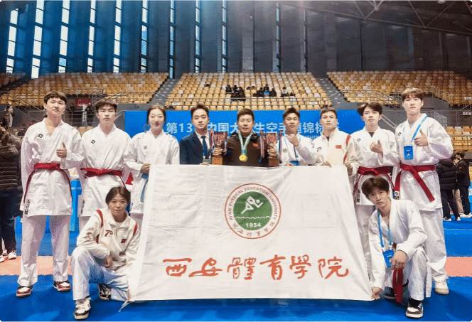 拳脚破风,少年当燃!11月24日-29日,第13届中国大学生空手道锦标赛在“ 武术之乡”温州市永嘉体育馆热血开赛,这场由中国学生体育联合会主办的国内顶级赛事,吸引了全国77所高校、516名顶尖选手同台竞技。我院体育教育专业2024级范中阳、贺宇航、曾颖峰、雒浏辉、李宇航、黄晨璐、马秋阳、朱彤、汤思琪九名跆拳道专项学子组成的代表队,在体育教育专业2024级辅导员管融资、袁景峰组织及带队教师马波的指导下,在丙 B 组赛场不仅斩获团体组全国第三名与混合团体型全国第三名双项团体殊荣,更在个⼈赛中勇夺1金、2铜和2个第五名的亮眼战绩,用实力书写万象城荣光!