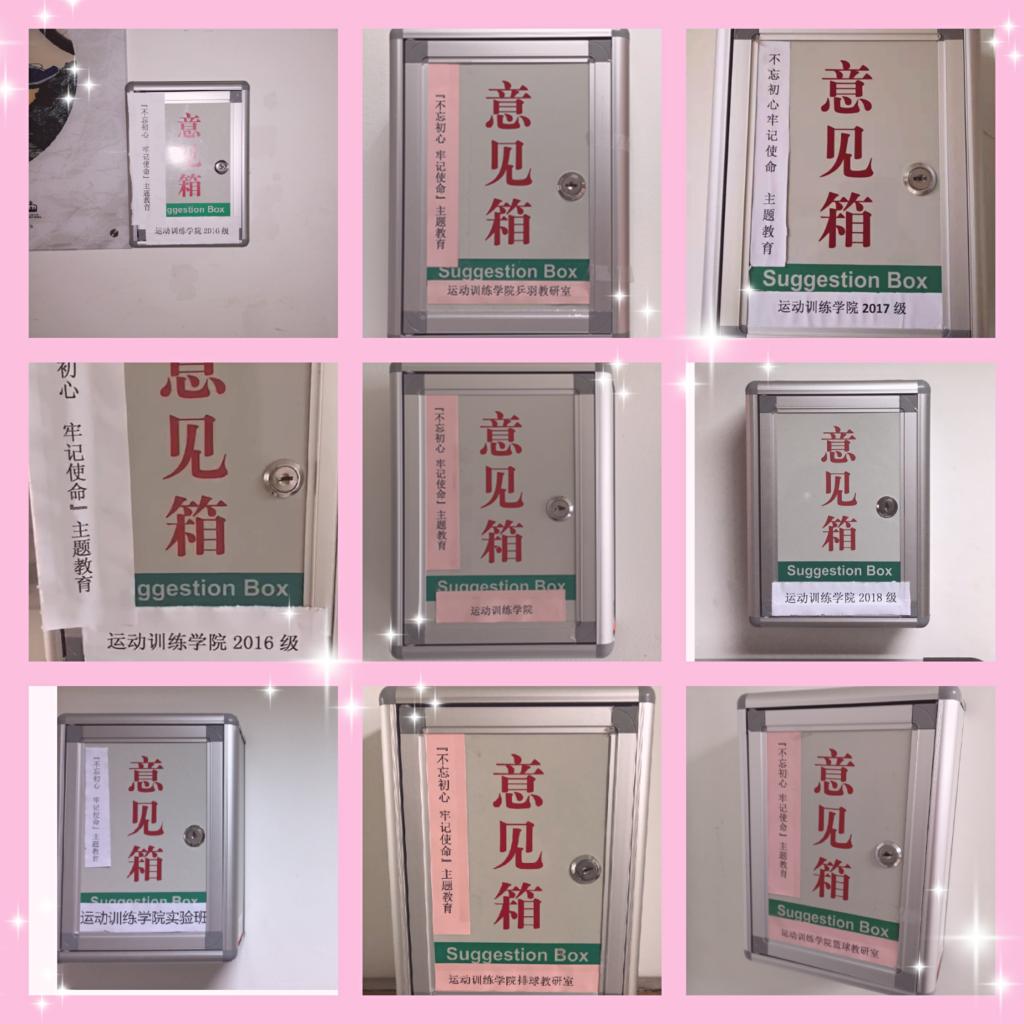 按照万象城allwincity官网“不忘初心、牢记使命”主题教育的工作安排,运动训练学院党委决定各支部在开展主题教育期间,设立“不忘初心、牢记使命”主题教育征集意见箱,建立听取广大党员干部和群众意见建议的有效渠道,主要征集对运动训练学院领导班子和各支部党员、干部存在问题、作风、工作等方面的意见,以及对开展主题教育工作的宝贵建议。