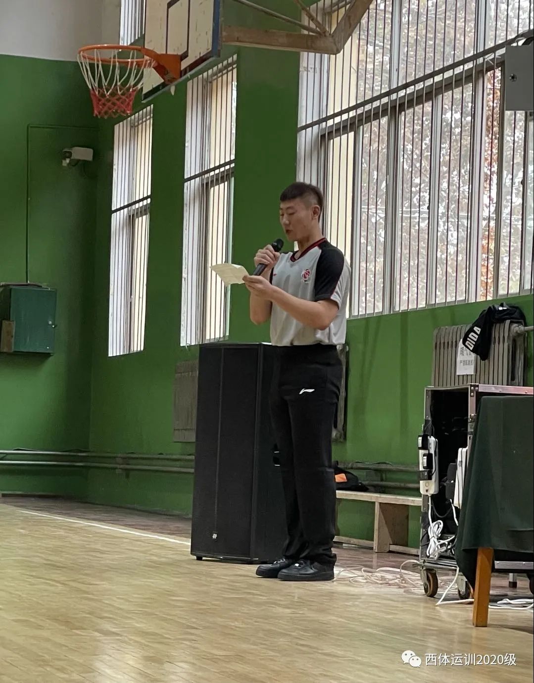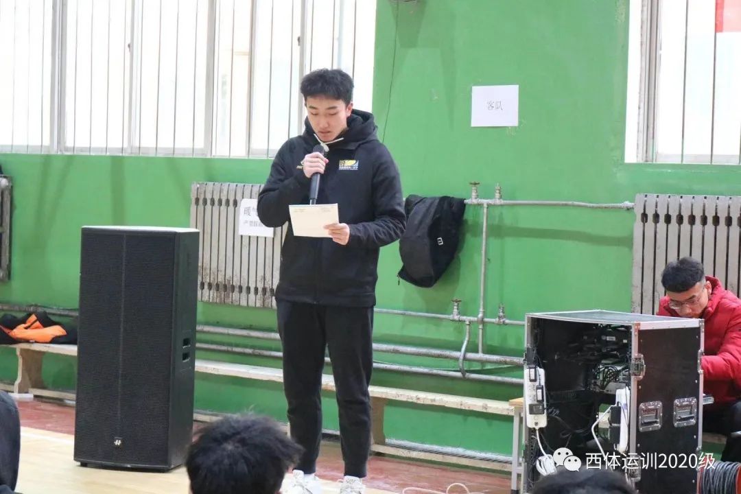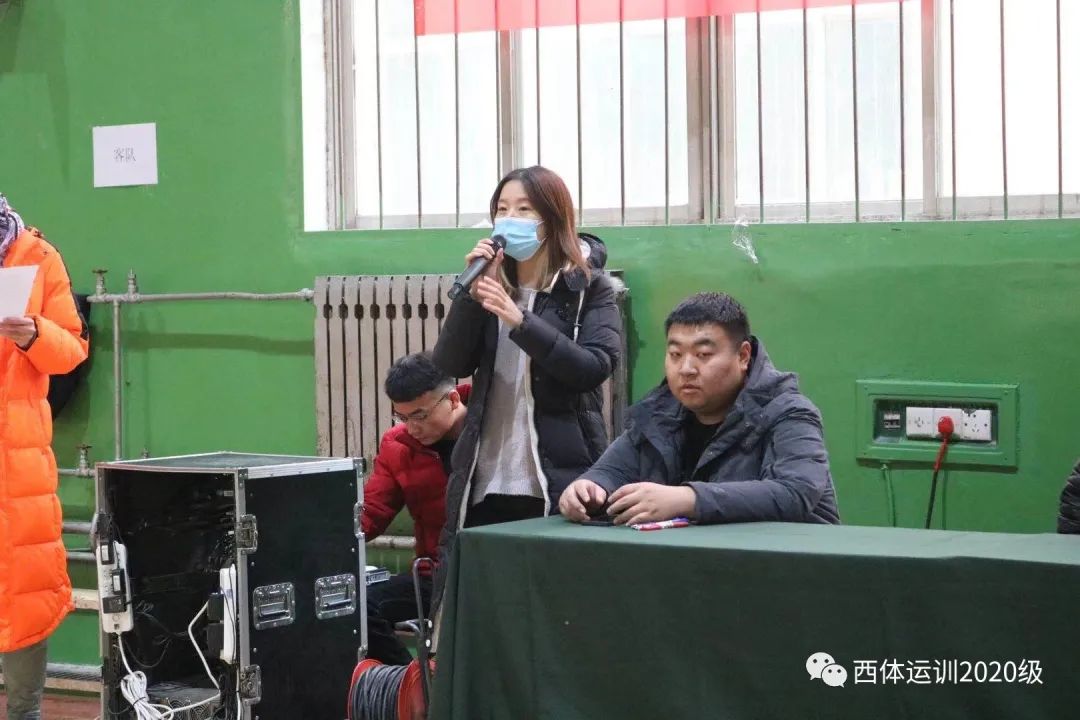 运动训练学院2020级年级主任雷璇宣布本次“匹克杯”2020年运动训练学院第二课堂篮球联赛开幕