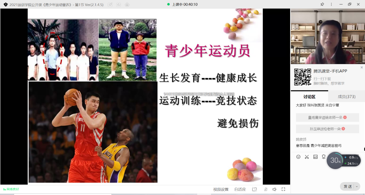 根据陕西省科学技术协会下发的《关于举办2021年陕西省全国科普日活动的通知》文件精神,运动训练学院于9月22日下午12:20,通过腾讯课堂成功举办了青少年运动员膳食营养的讲座。运动训练学院2021级全体学生参加本次讲座。通过此次讲座为21级新生们普及了运动员膳食营养的知识以及为以后的学科学习打下了基础。