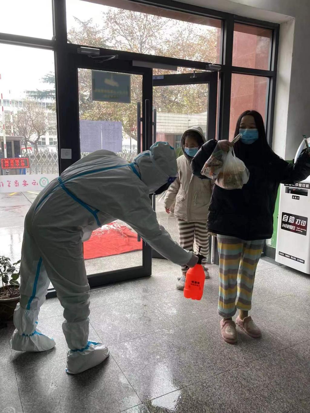 当疫情出现时,陆续有我学院教师因小区疫情防控配合隔离,生活不便。为发挥我院党员在疫情防控中的重要作用,大力弘扬“奉献、友爱、互助、进步”的志愿精神,经学院研究决定,由学院领导、办公室成员、各党支部书记组成,成立疫情防控志愿服务队,为需要的老师及时提供生活帮助和服务。自乒羽教研室吴洁老师隔离以来,因自己给学校师生带来防疫隐患,心理压力很大,党委书记王鑫每日关心其健康状况,电话沟通及时疏导;因老西院小区封控,黄谦老师电脑在办公室,得知黄谦老师需要研究生答辩着急用电脑时,党政办公室副主任刘志云马上将电脑送到黄谦老师手中等等一些平凡的事情,却彰显了爱心善意和使命担当,为抗击疫情做出了积极的贡献。