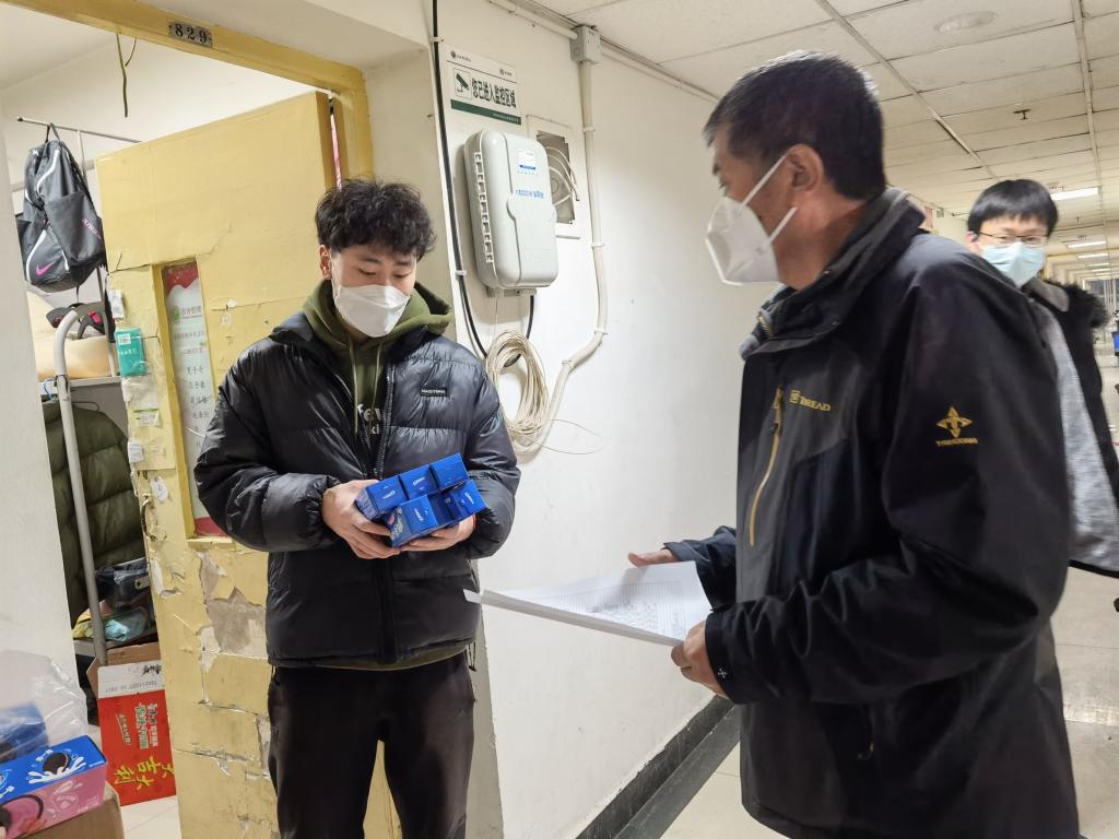 新年来临之际,老师们走进学生公寓看望学生,每到一个宿舍,都与学生深入交谈,送去新年的祝福,了解学生封闭在校的生活学习情况,查看宿舍暖气,叮嘱同学们注意保暖,做好个人卫生、宿舍卫生,上好网课,要配合好学校的防疫工作,确保同学们的健康。