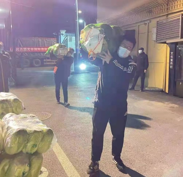照片十:重竞技教研室党支部书记马波教授为教职工转运爱心蔬菜