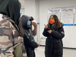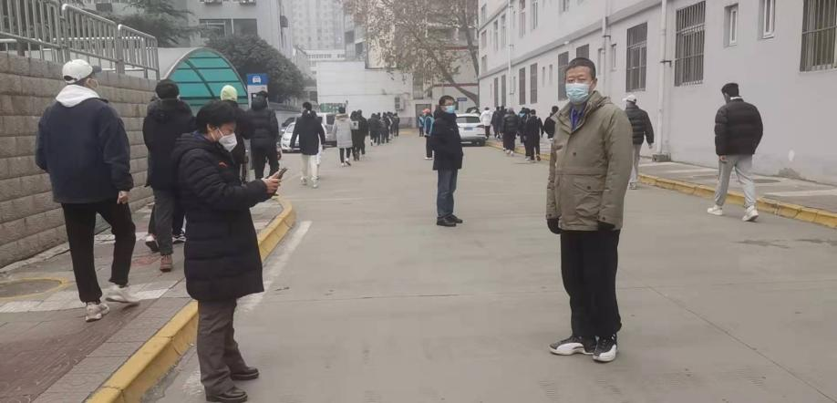 照片二十:排球教研室教授赵文娟维持核酸检测秩序