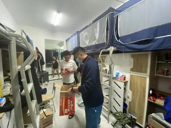 疫情正值元旦佳节,学校为校区师生送上了元旦礼包,王涛老师亲自到宿舍发放,并慰问所有同学,第一时间为大家送上元旦祝福。为丰富我们的在寝封闭生活,安排线上K歌大赛,让我们即使无法面对面也感受到了节日的氛围。