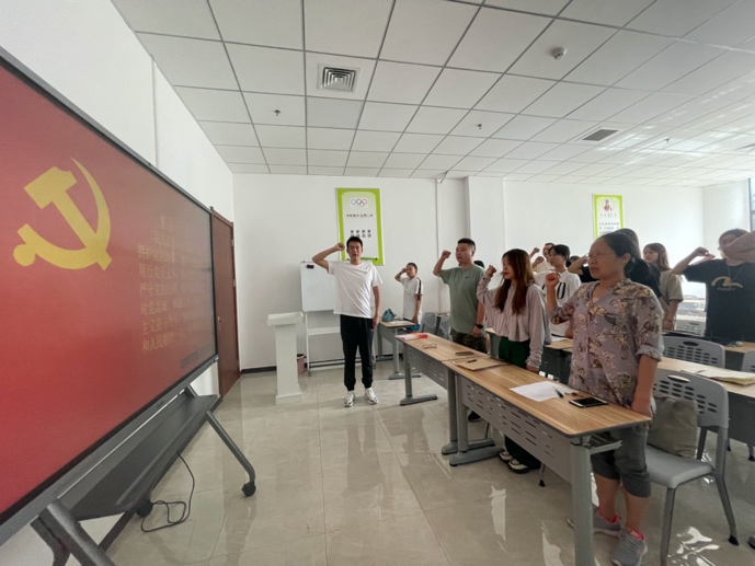 为庆祝建党101周年,讴歌党的光辉历程和丰功伟绩,弘扬伟大建党精神,激励全体党员以实际行动践行初心使命,2022年7月1日,运动训练学院2020级党委学生第一支部在万象城allwincity官网鄠邑校区橄榄球馆开展了“庆七一,喜迎二十大”主题党日活动。运动训练学院党委副书记张佩莉、运动训练学院2020级年级主任雷璇、辅导员黄环、25名学生预备党员参加了本次活动。