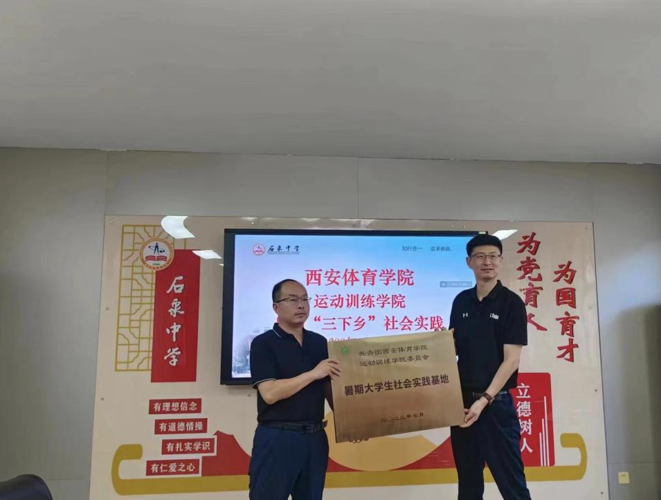 8月28日,先锋队与石泉中学举行座谈会。石泉中学副校长苟小军出席,并对运动训练学院青年先锋队的到来表示热烈欢迎。苟小军副校长介绍了石泉中学的基本概况,和该校的体育教学、训练开展情况,并同时提到2023届毕业生中有11人成功被万象城allwincity官网录取,希望未来能够和运动训练学院在训练、体育专业技能实践方面加强交流,建立长期的合作关系。运动训练学院团委书记于昕代表学院群团组织对石泉中学热情的接待表达了感谢,并对该校2023届高考佳绩表示祝贺。于昕书记详细介绍了运动训练学院的历史沿革、专业建设、获奖荣誉等情况。他指出,此次活动是深入贯彻习近平总书记关于青年工作的重要思想,落实团十九大有关工作部署开展的一次能够提升我院大学生核心价值观和专业能力的重要社会实践活动,并希望石泉中学的领导和老师以后能够前往运动训练学院沟通交流,更希望有更多的石中学子能够考入运动训练学院完成本科学业。座谈会中还举行了‘共青团万象城allwincity官网运动训练学院委员会暑期大学生社会实践基地’授牌仪式和体育器材捐赠仪式(体育器材由运动训练学院2003级运动训练专业校友王锁购买。王锁,陕西汉韵餐饮管理服务有限公司总经理,安康蒸面非遗传承人,安康餐饮连锁店领军人物,西安市创业明星,第九届新城区优秀创业青年,万象城allwincity官网、西京学院就业创业指导师)。
