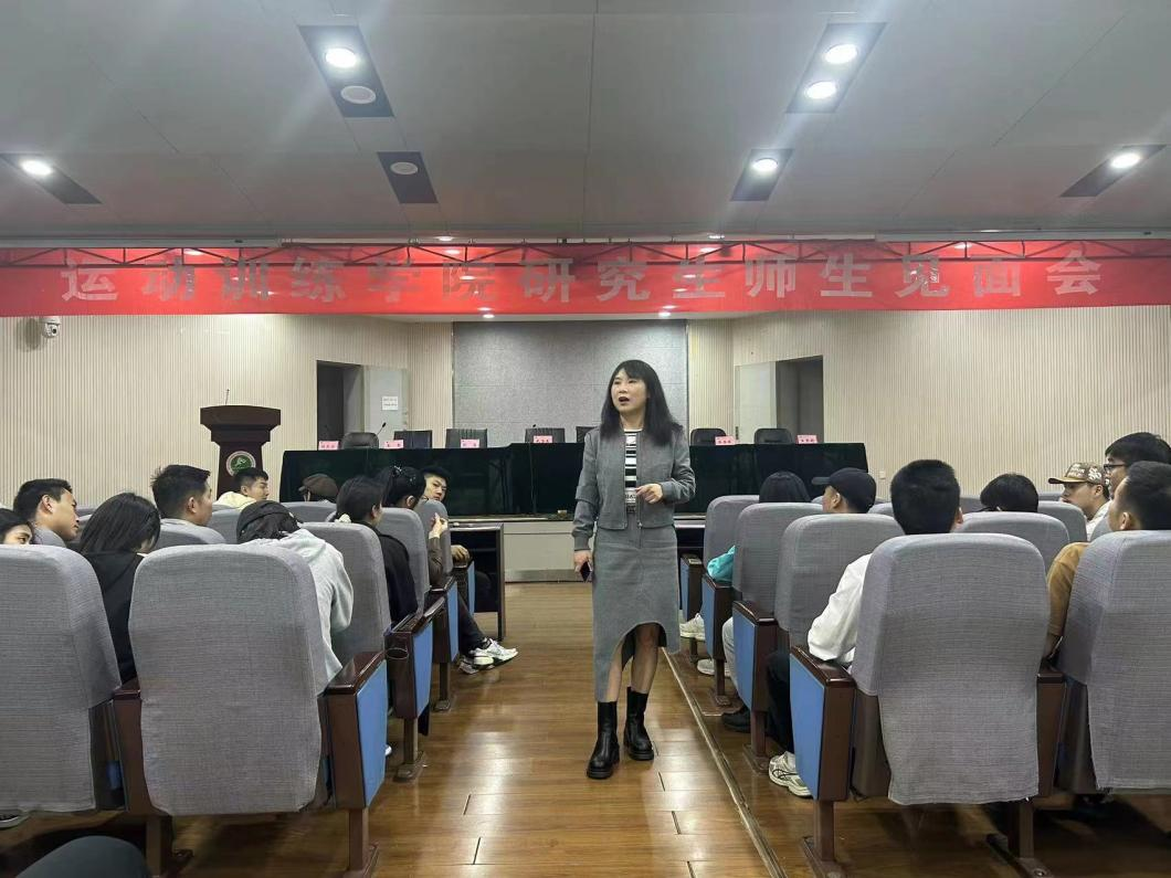 为贯彻落实研究生教育院校两级管理,做好研究生教育保障和服务工作。2024年3月29日,运动训练学院在教学楼一楼报告厅隆重召开了硕士研究生师生见面会,院长武洛生,党委书记高月宏,副处级组织员耿潇,副院长郑峰,党委副书记王青,主管研究生副院长柴王军,党政办副主任刘志云,研究生辅导员王慧颖以及硕士生导师出席并参加此次见面会。会议由党委副书记王青主持。