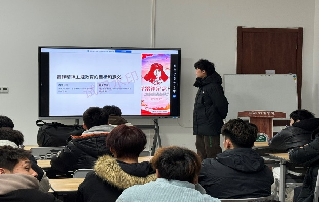 “学习雷锋榜样,争做志愿先锋”主题班会。2023级召开“学习雷锋榜样,争做志愿先锋”主题班会。班级团支书通过朗诵雷锋同志部分日记,讲述自己所了解的雷锋同志的先进事迹,介绍自己知道周边开展的深入贯彻雷锋精神的以“关爱他人,关爱社会,关爱自然”为主题的实践活动,宣传和弘扬“奉献他人,提升自己”的志愿服务理念,并各自展示了自己理解的雷锋风貌。