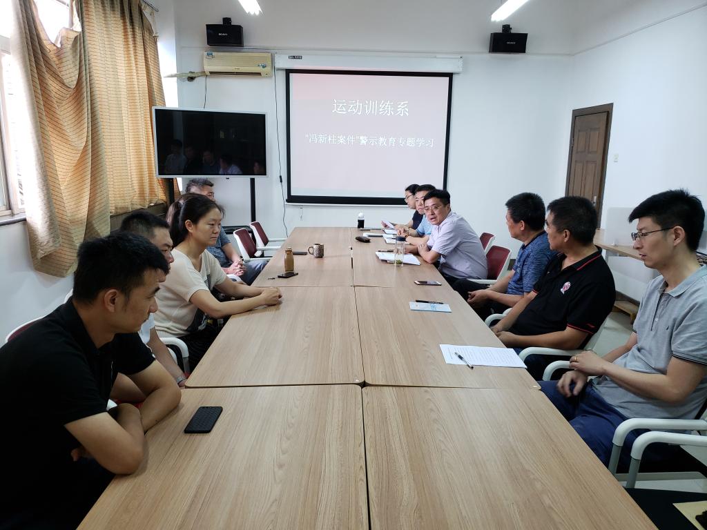 7月13日,运动训练系召开冯新柱案警示教育专题会议,处科级干部、党支部书记参加会议,本次会议由党总支书记张卫国主持。