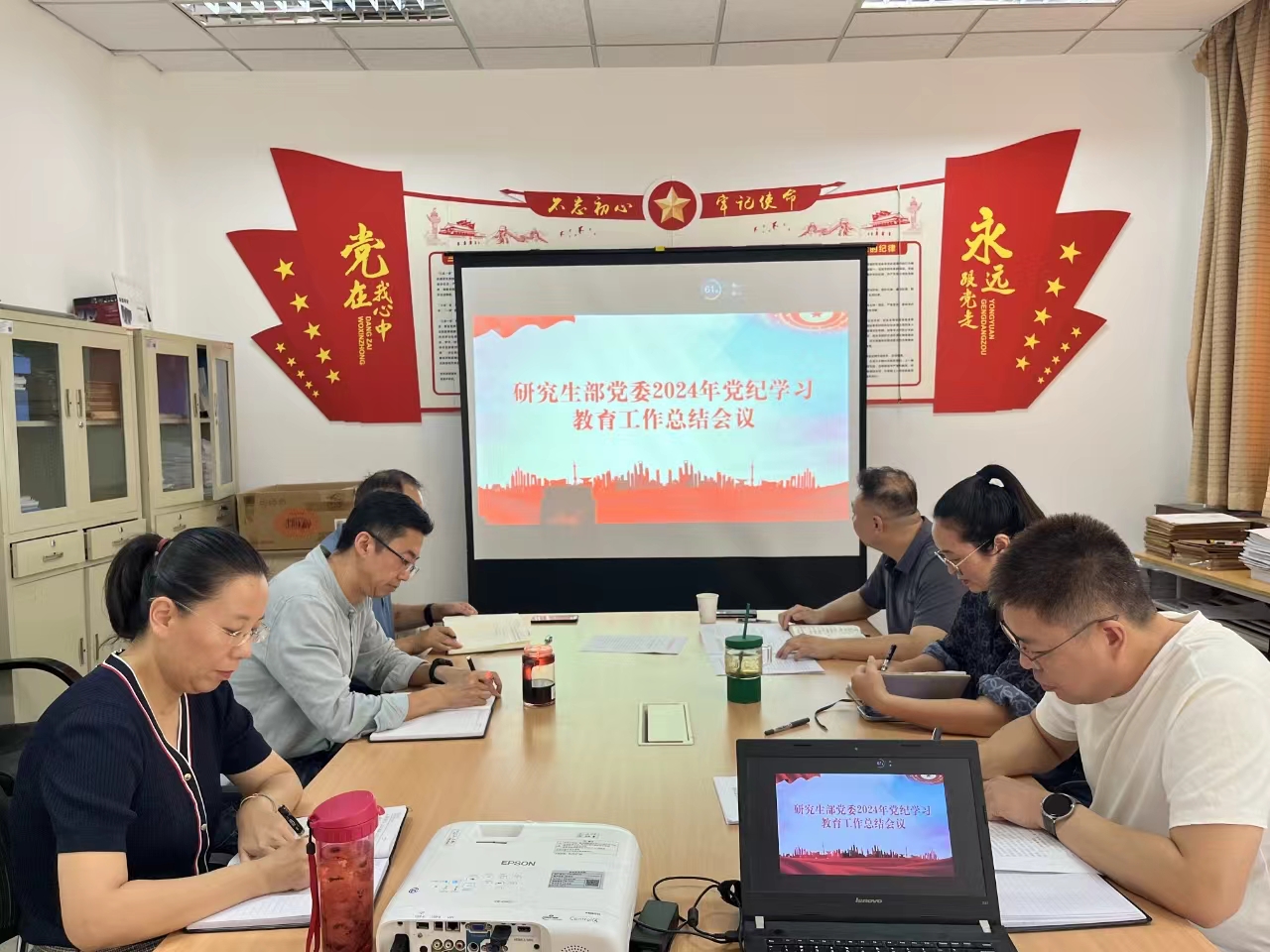 2024 年 9 月 26 日下午,研究生部党委召开党纪学习教育工作总结会议,对学校全面开展党纪学习教育工作进行全面梳理和总结。