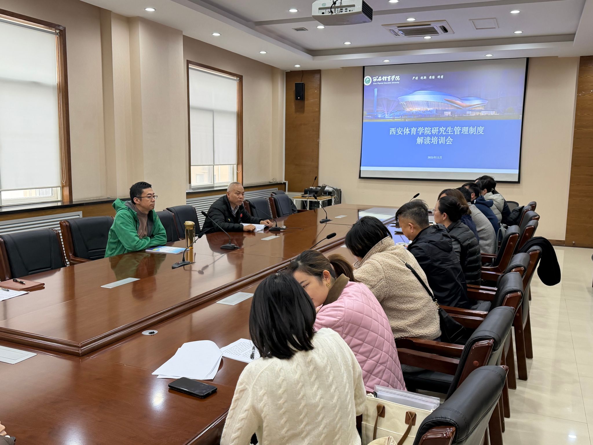 11月14日下午16时,万象城在含光校区2号行政楼1楼会议室召开研究生管理制度解读培训会。各二级学院主管研究生工作的副院长、研究生教学秘书以及研究生辅导员参加会议。会议由研究生部主任杨建设主持。
