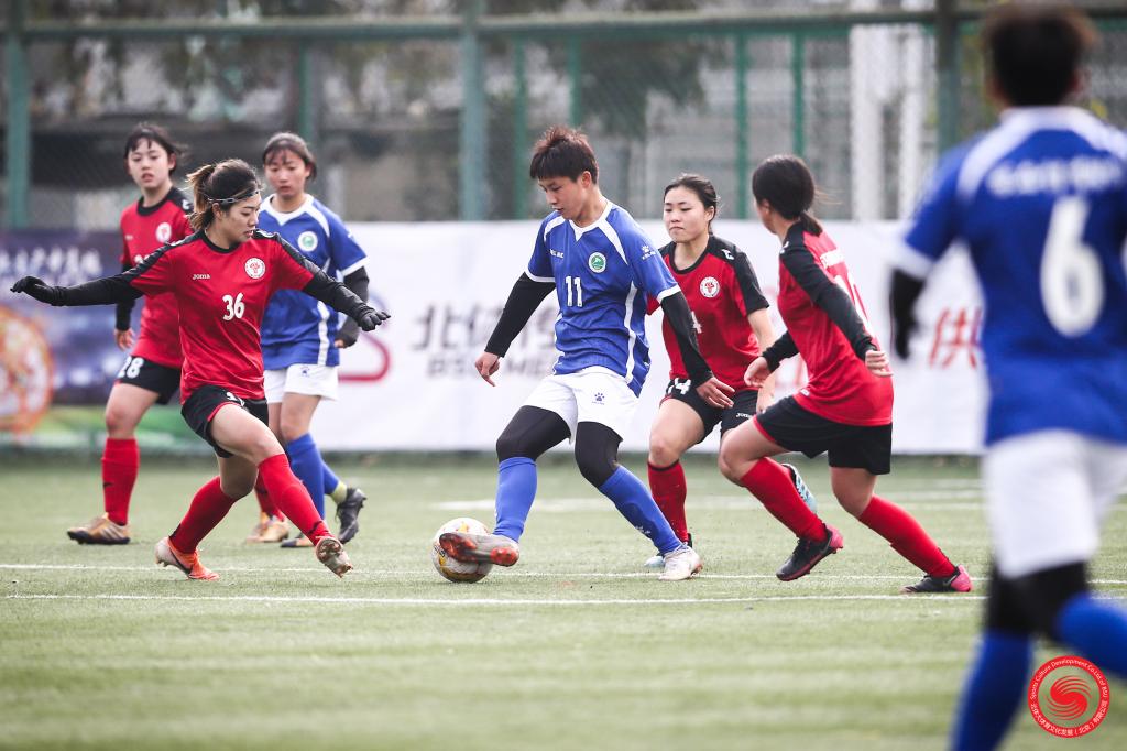 万象城女足代表队(蓝色队服)在场上拼搏