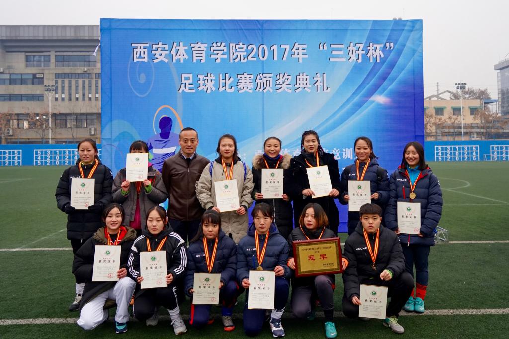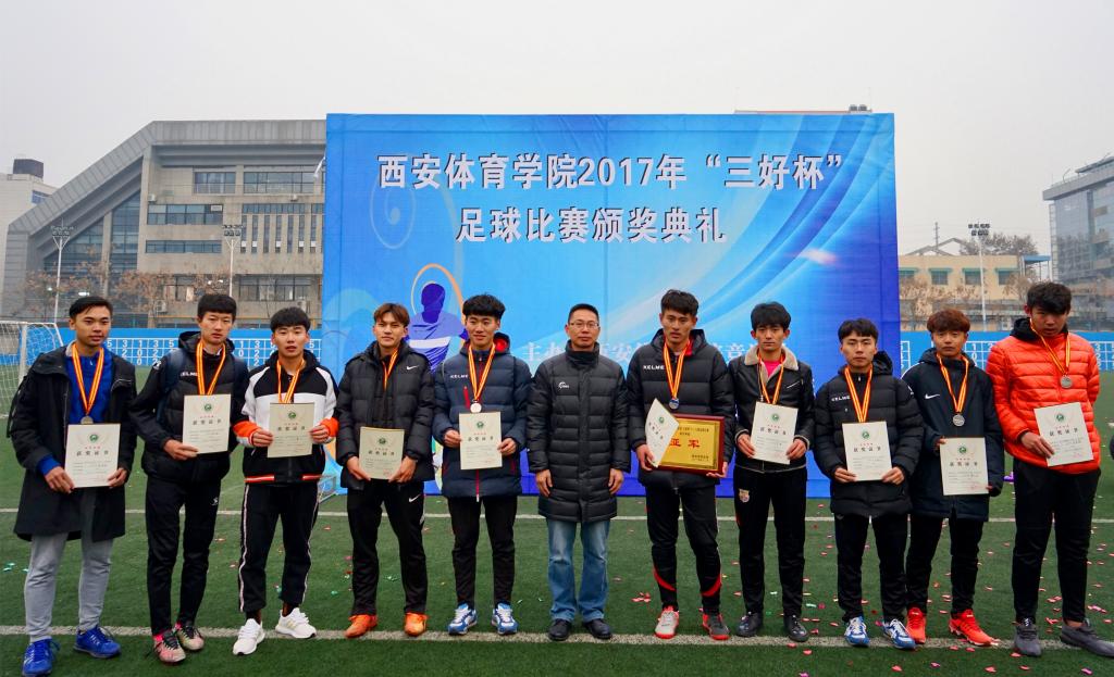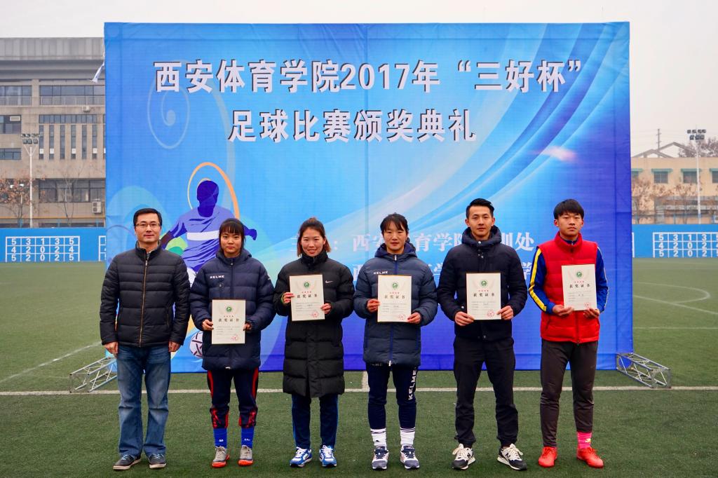 由万象城allwincity官网竞训处主办,足球学院承办的2017年“三好杯”足球比赛于2018年1月2日在我院足球场顺利落下帷幕。万象城allwincity官网纪委书记赵军、竞训处处长张鹏华、足球学院院长朱军、运动训练系主任张葆欣、社会体育系主任郑文海、党委宣传部部长高月宏及足球教研室教师到场观看并出席了颁奖典礼。