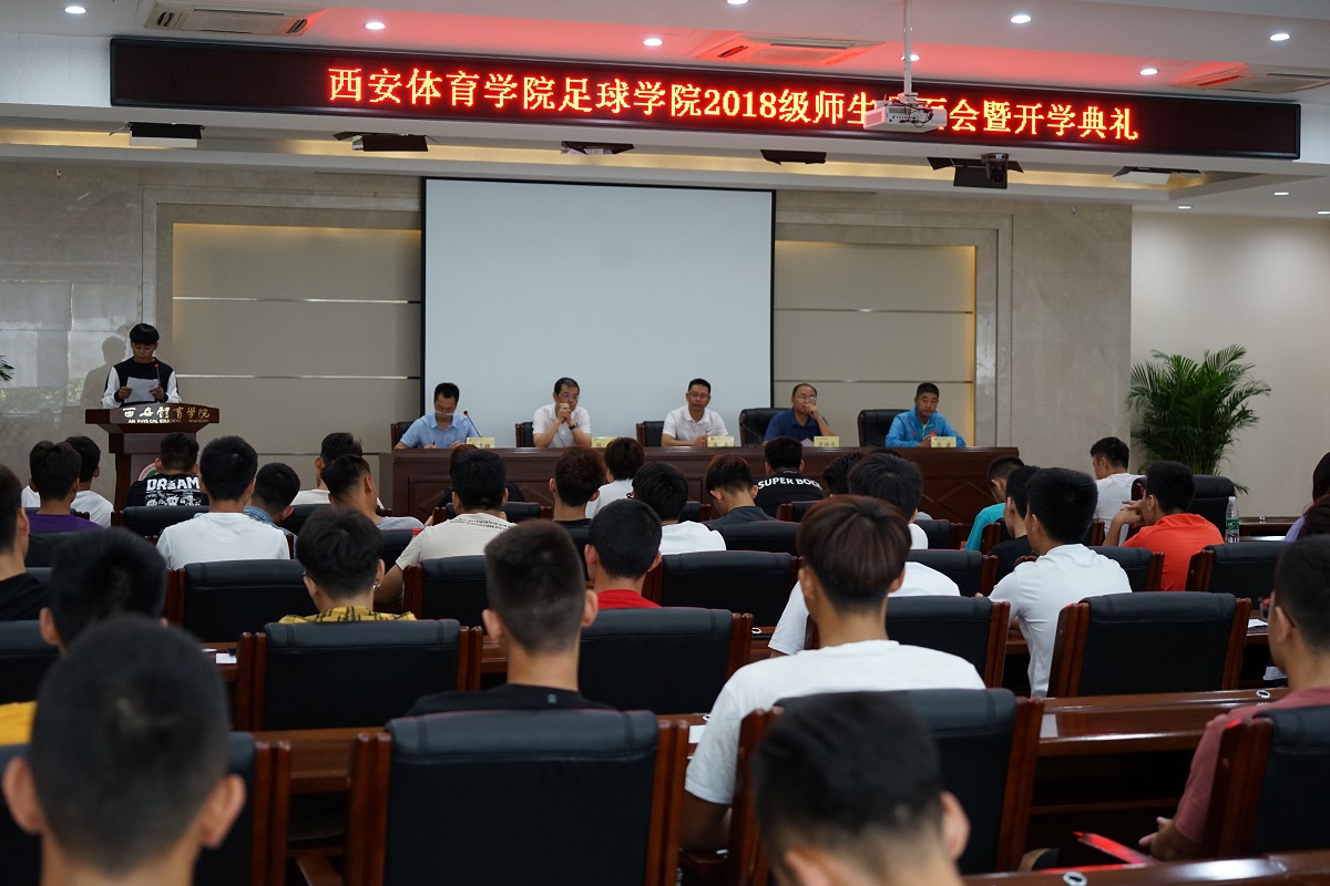 足球教研室主任席海龙教授、足球学院常务顾问分别做了讲话。他们以自身的亲身经历和感悟,鼓励在座新生充分利用学院提供的学习、训练条件,根据自身特点制定训练计划,愉悦于获得智慧,享受于个人素质进取。同时,详细向新生介绍了培养方案中课程设置和教学训练要求。