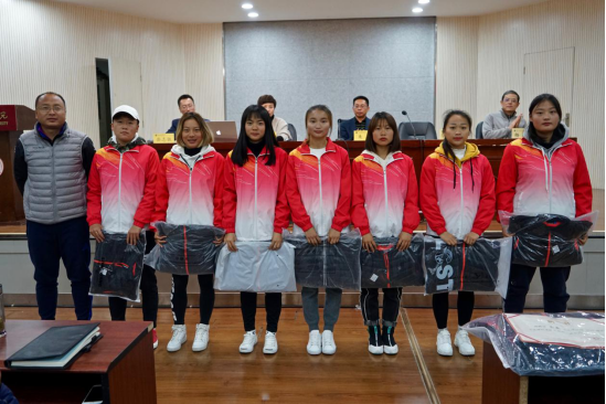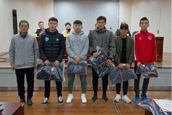 足球学院院长朱军为足球学院2017级男足主教练马俊、2018级男足主教练高巍、足球学院女足主教练林佶倩颁发了聘书,聘期为两年。