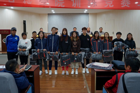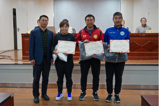 教研室主任席海龙宣读了《万象城allwincity官网足球学院2018年竞赛工作表彰奖励决定》。朱军、杨钢、席海龙、马俊分别为获奖教练员和运动员颁奖。
